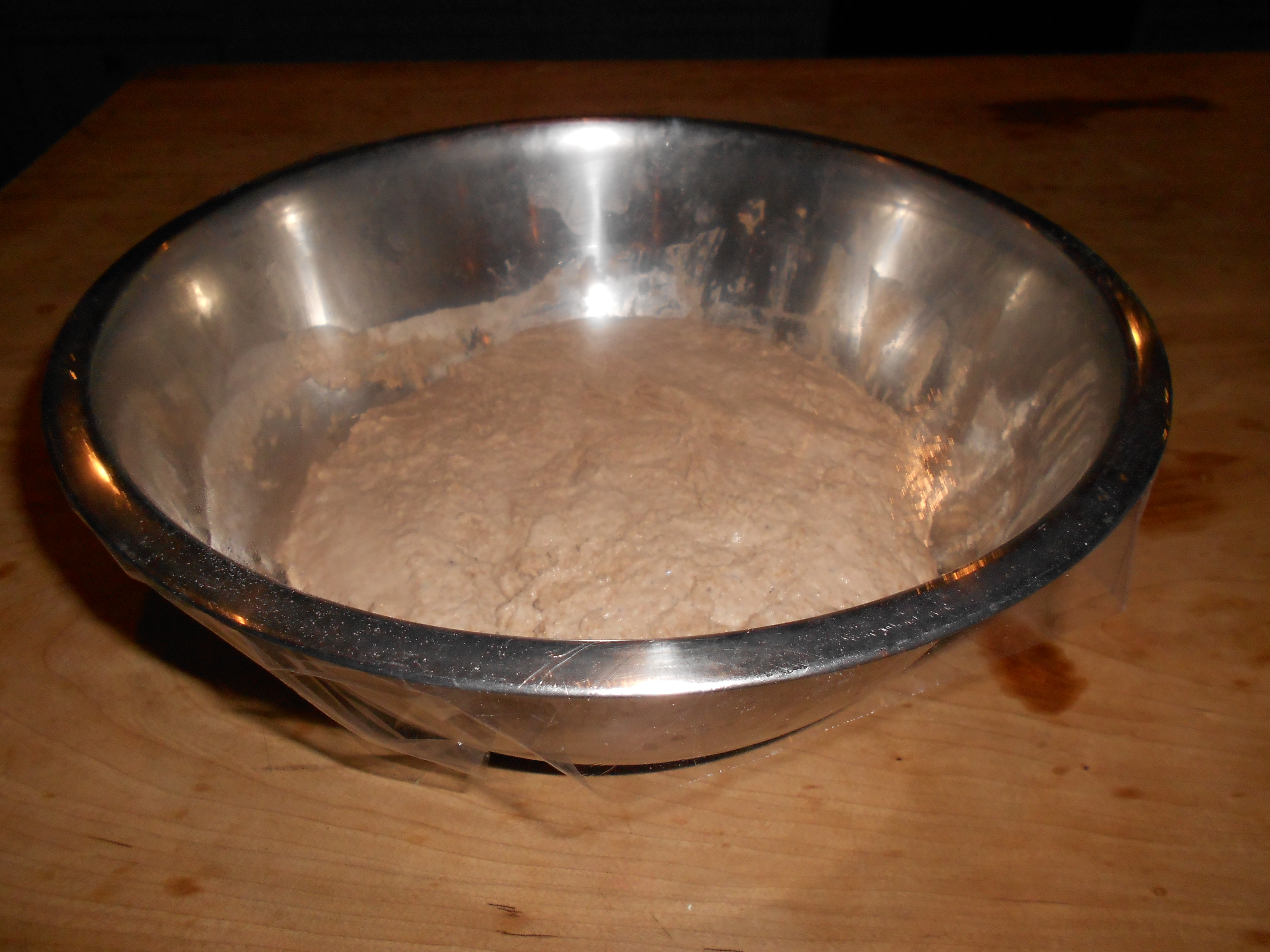 2. Put dough in a bowl, cover with plastic, and allow to rise for 12-24 hours. The longer the better.