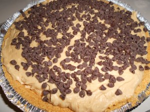 4. Put a layer of mini chocolate chips on the bottom of pre-made crust, and add filling on top. Put another later of mini chocolate chips. Allow filling to set in the refrigerator.