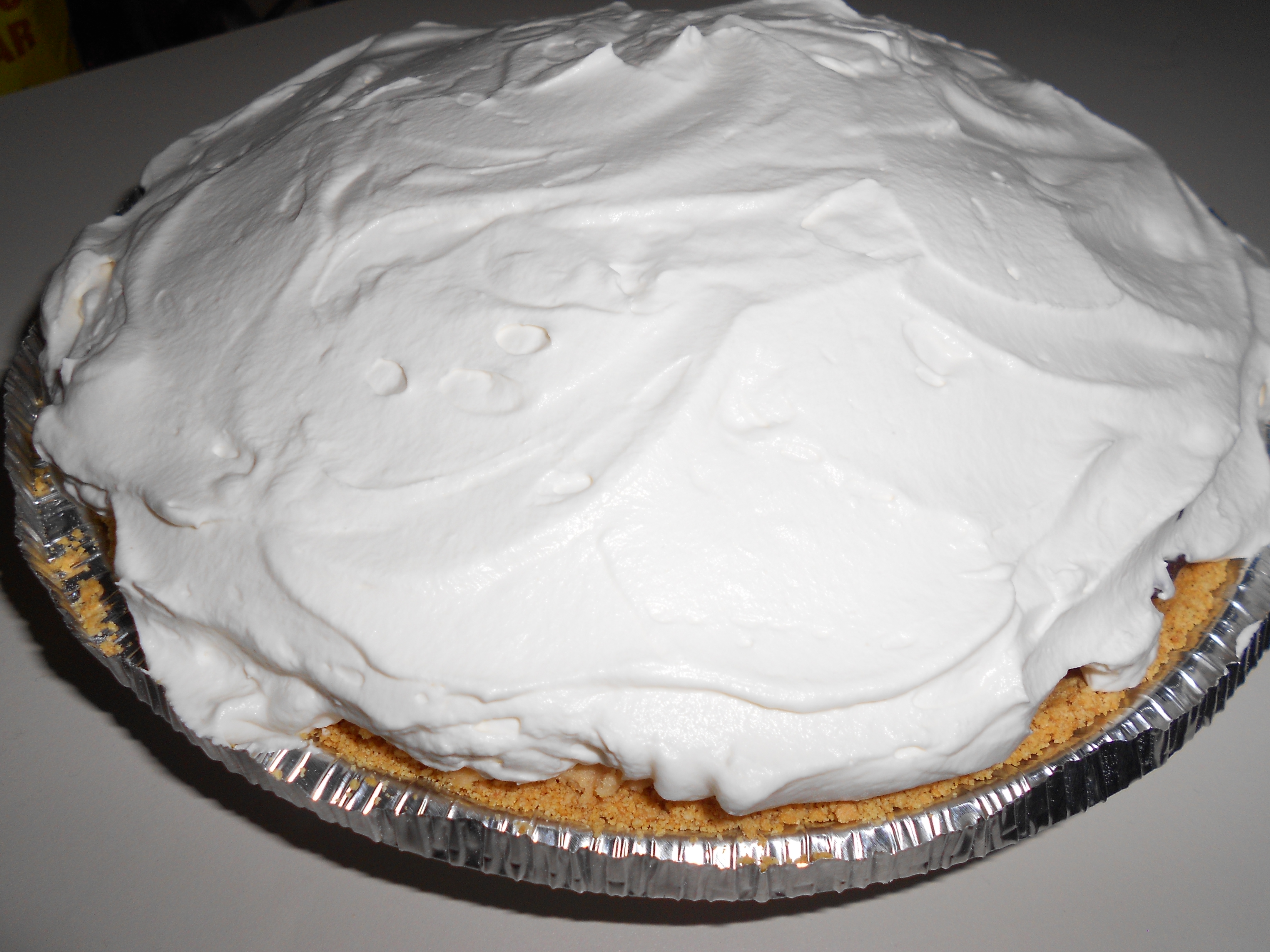 5. Whip up extra whipping cream and sugar to taste. Top pie with a layer of whipped cream. Store in fridge.