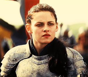 However, I do not think she played the role of warrior princess well when she went into battle against the evil queen. Just because she puts on a suit of armor and throws her hair in a ponytail (which was quite horrific as hairstyles go) does not make her a fighter who is able to combat the magical powers of the Evil Queen. It would have been more realistic if the huntsman had conquered the evil queen in defense of Snow White because at least it is apparent that he is physically stronger than the Evil Queen when she doesn’t have her magical powers. I’m surprised that the writer of this script was not a woman because this story has quite the feminist force behind it.