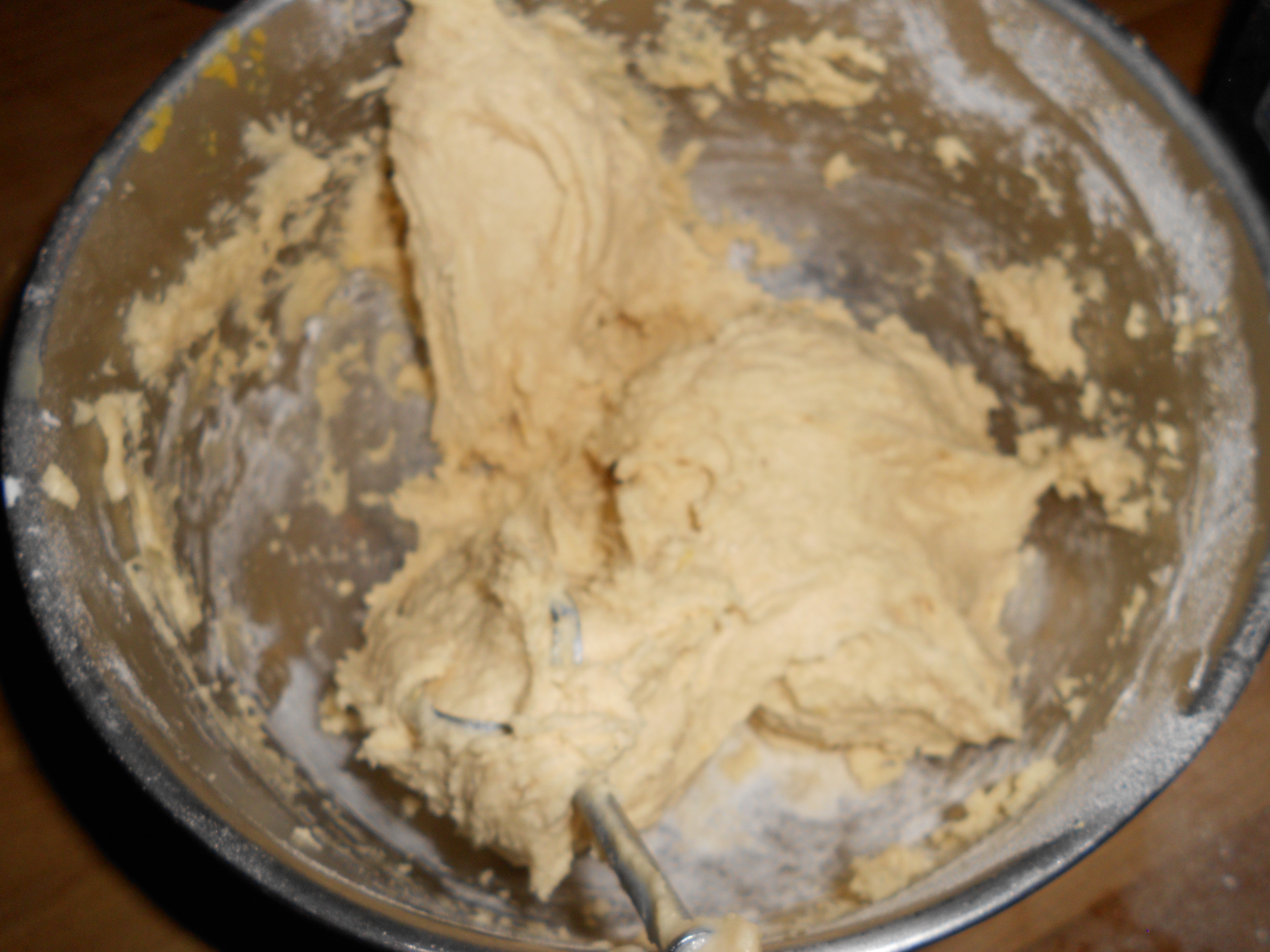 - Combine flour, sugar, shortening, baking powder, almond extract, lemon juice and zest in separate bowl.