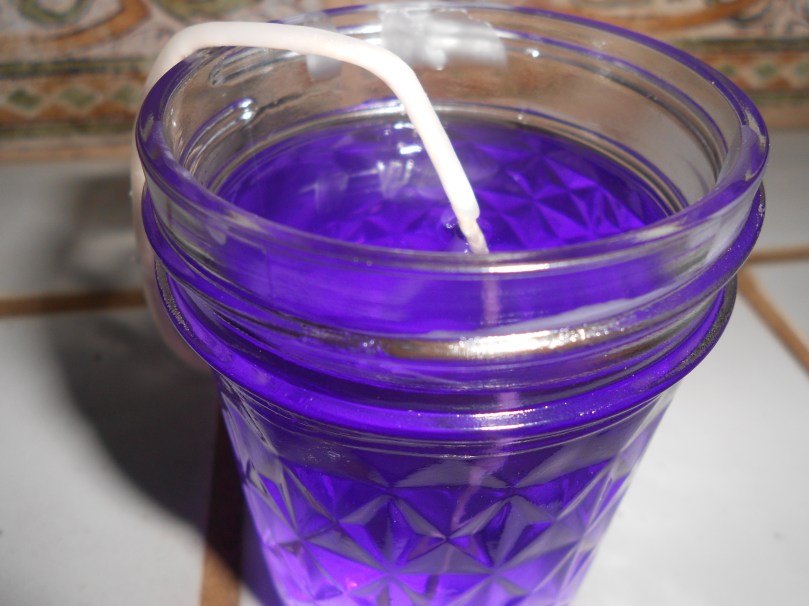 I’ve had some extra mason jars hanging around my house that I’ve been meaning to use for something. Last weekend I came up with a great idea: candles. I decided it would be cute to make some candles in the small mason jars that I could use primarily outside to decorate the dinner table.
