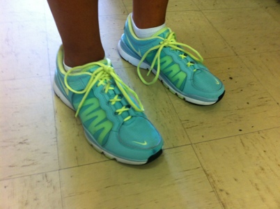 Well it’s been a long month. Sadie is coming to visit this weekend with our good friend Karla so that makes the month a little bit better. A little retail therapy this week made things better as well. I must admit that I gave in to the bright sneaker craze. I was influenced by my employees. Here is a picture of hers and then one of my new kicks. Maybe you will be persuaded as well!