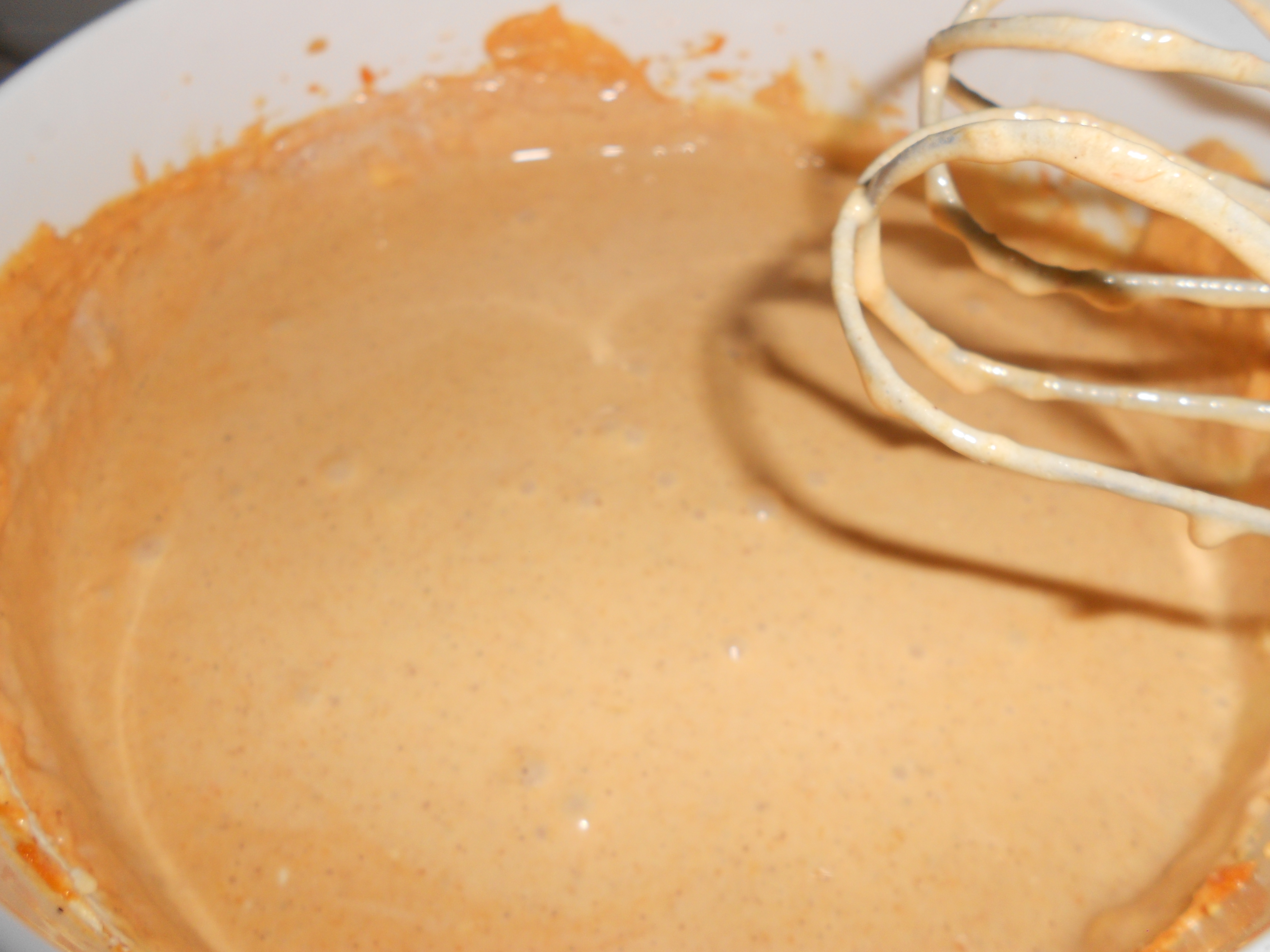 9. For garnish I whipped up some heavy cream with my electric mixer, and I added in some vanilla and sugar.  Then I used the pecan halves to decorate.