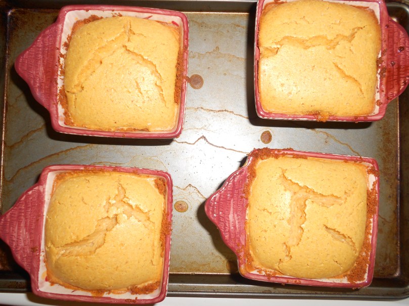 I decided to try out a pumpkin spice cheesecake, and I have these awesome Temptations individual ramekins, so it turned into individual pumpkin cheesecakes. Sometimes cheesecake is really dense but this one was nicely and fluffy, it’s a really good version.