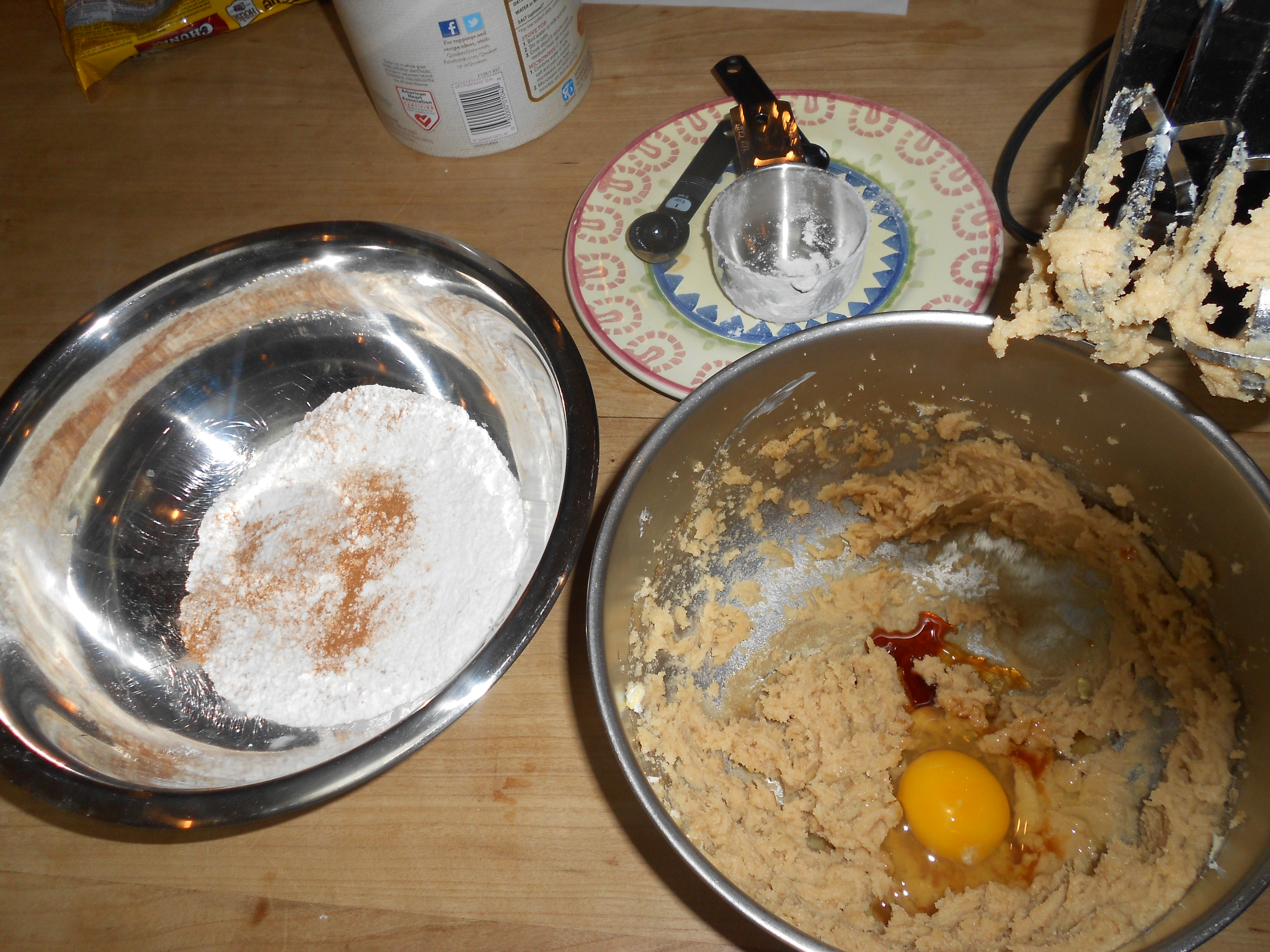 - Combine flour, baking soda, nutmeg, cinnamon, and salt. Set aside.