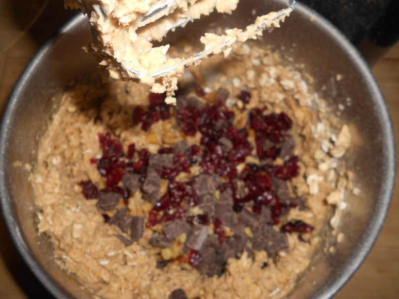 - Add in oats, chocolate, craisons, and walnuts. Mix until just combined, try not to over mix.