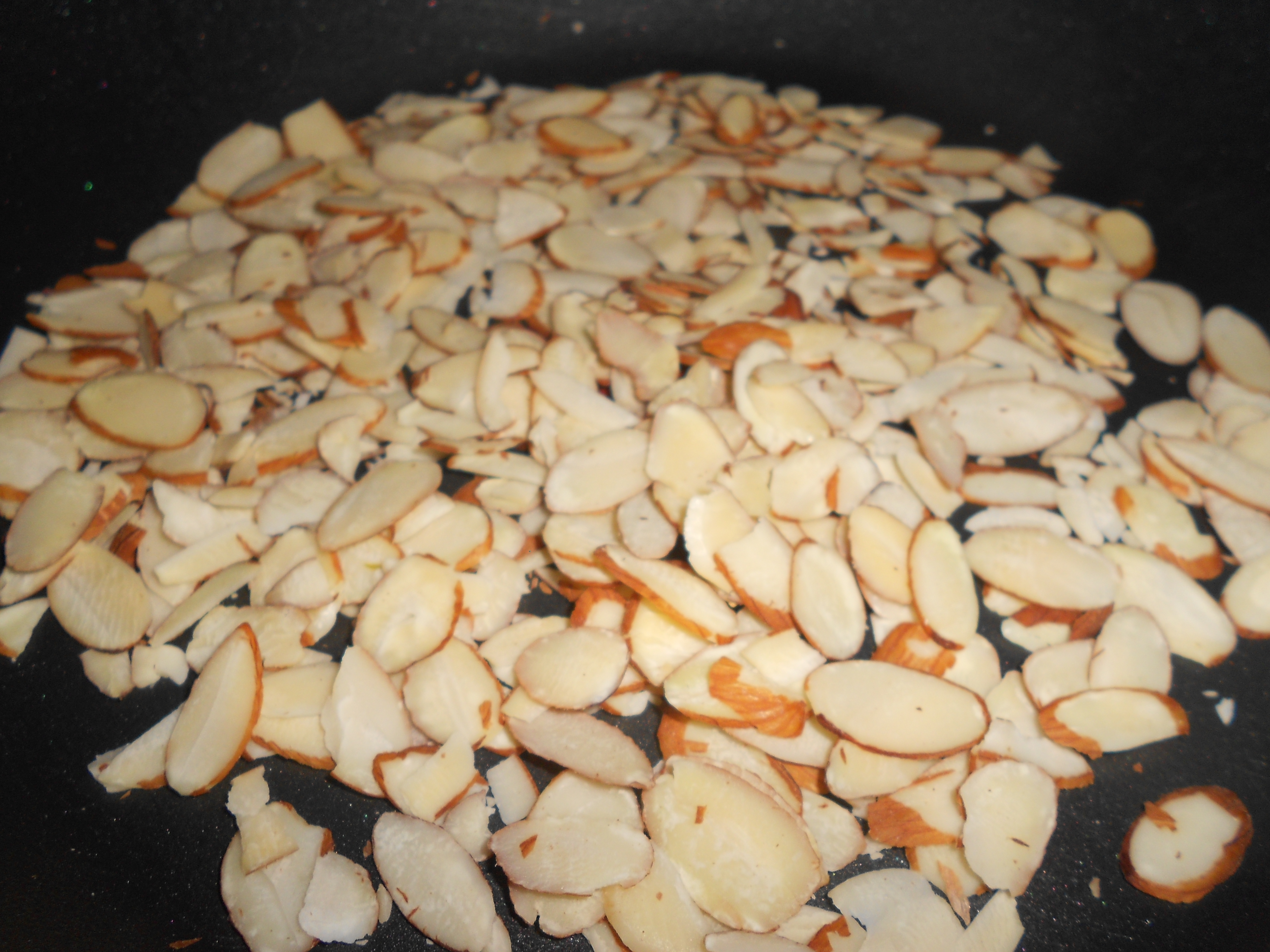3. Meanwhile, give your sliced almonds a quick toast over low heat in a pan on the stove.  This should only take a few minutes, don’t let them get too brown!