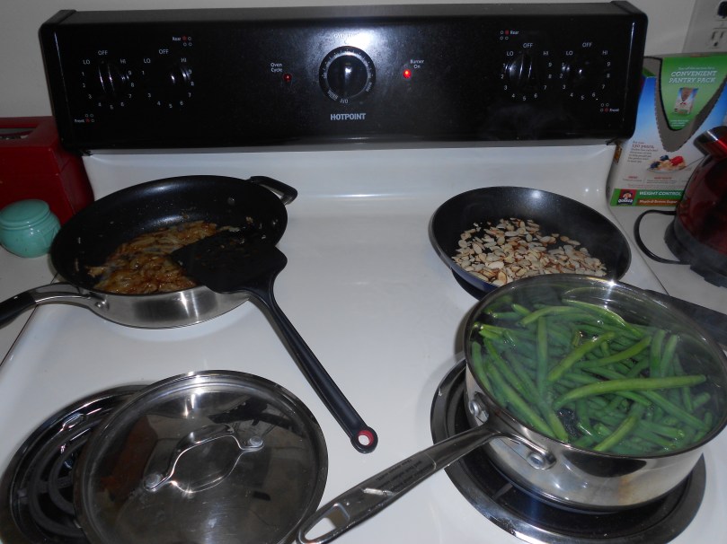 I’ll tell you a secret.  I love a green vegetable.  My two favorite green vegetables are probably broccoli and green beans.  The topic at hand today is the green bean.  The key with the green bean in my mind is that they are cooked but still crunchy.  I’m not a fan of the mushy green beans that are either cooked to death or canned.  A couple years ago I took inspiration from a few different recipes that I saw from various sources and started making a fabulous green bean dish.  This dish has since become a staple at important eating occasions in my family, including a spot at the most important eating occasion: Thanksgiving.