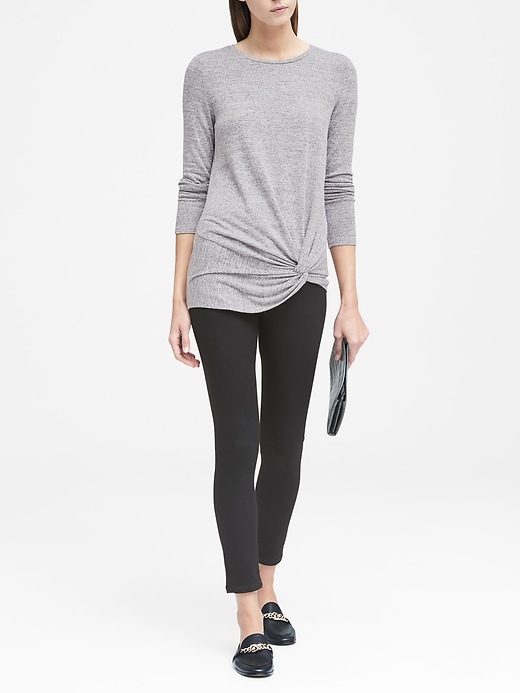 This is one of my favorites so far. It gives you the effect of the 90’s waist tie look, but makes it a little more tailored. When every shirt seems to have puff or flared sleeves, it’s nice to see some architecture on the waist instead of the sleeve. I think most of these looks would look great with a high waisted jean, or stylish during a workout.