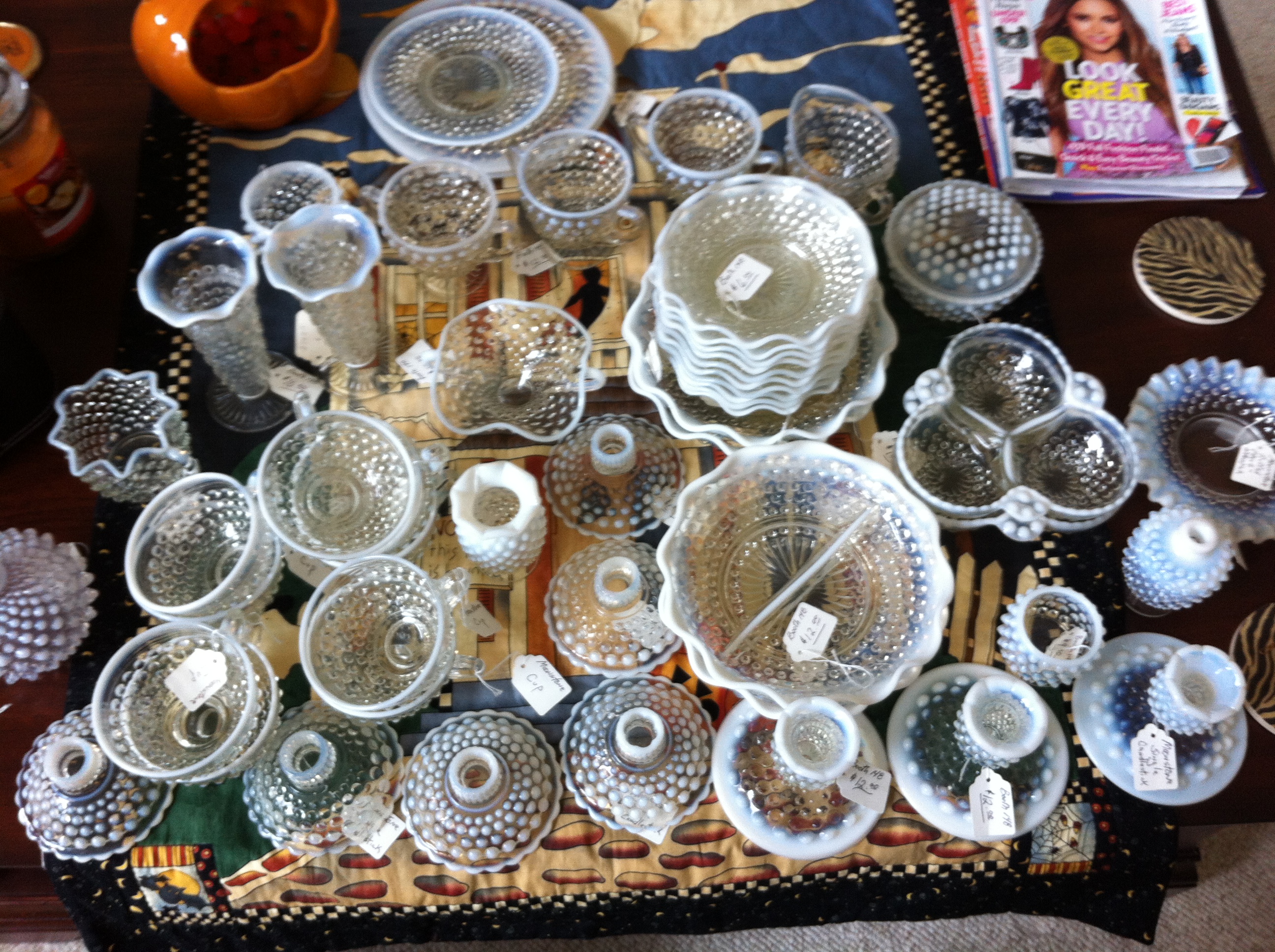 Yesterday I was at one of my favorite places, Days of Olde Antiques. I always find something when I go because they have a ton of antiques to choose from. They get a lot of traffic, which means that there is always something new to look at. When I was there last month, my mom bought me some things for my birthday presents. It’s always more fun when you don’t even have to pay for it yourself. Yesterday, I was able to make the most of my budget. Here’s how things went down. I decided that I was going to purchase this small candy dish to match some other pieces I have in my Anchor Hocking moonstone hobnail collection. I acquired some pieces from my grandmother. I just couldn’t resist this small $12 purchase.