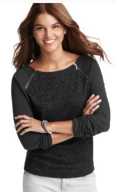 This feels like a 90’s throwback to me (90’s- so hot right now), and there are definitely pros and cons to this look. The ribbed sweater can hide a multitude of sins, but if there’s a bump or roll (you know we all have them), we might have a princess in the pea situation. Sometimes a ribbed sweater can accentuate a roll, so they aren’t the best option to pair with those pants that are a little tight at the waist. That said, it’s a great basic to stay cozy on the weekends, and they are often done in a sturdy, washable fabric which makes life so much easier!