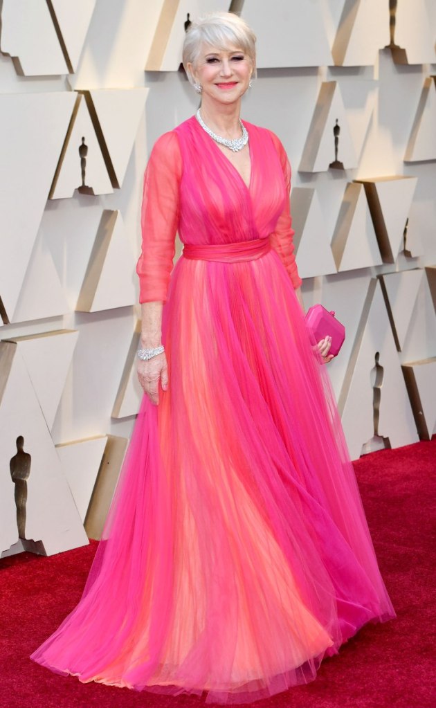 I love love love that Helen Mirren wore a great color. Everyone else her age is in black and white, and here she is riding the trends, but keeping it comfortable. She could not have picked anything better.