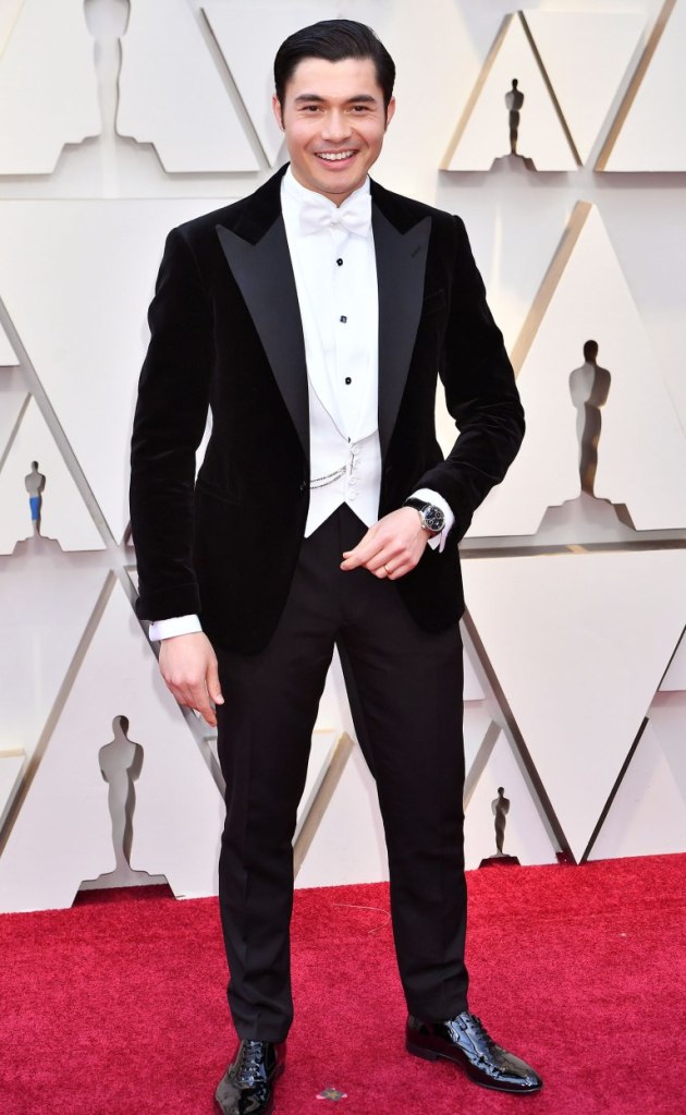 So many women wore pants suits this year. I don’t understand the disappearing feet look here with Awkwafina. Many women wore their pant hems to the floor, and it looks weird to me. I also just don’t think this was a great look for Awkwafina- too much and weird proportions.