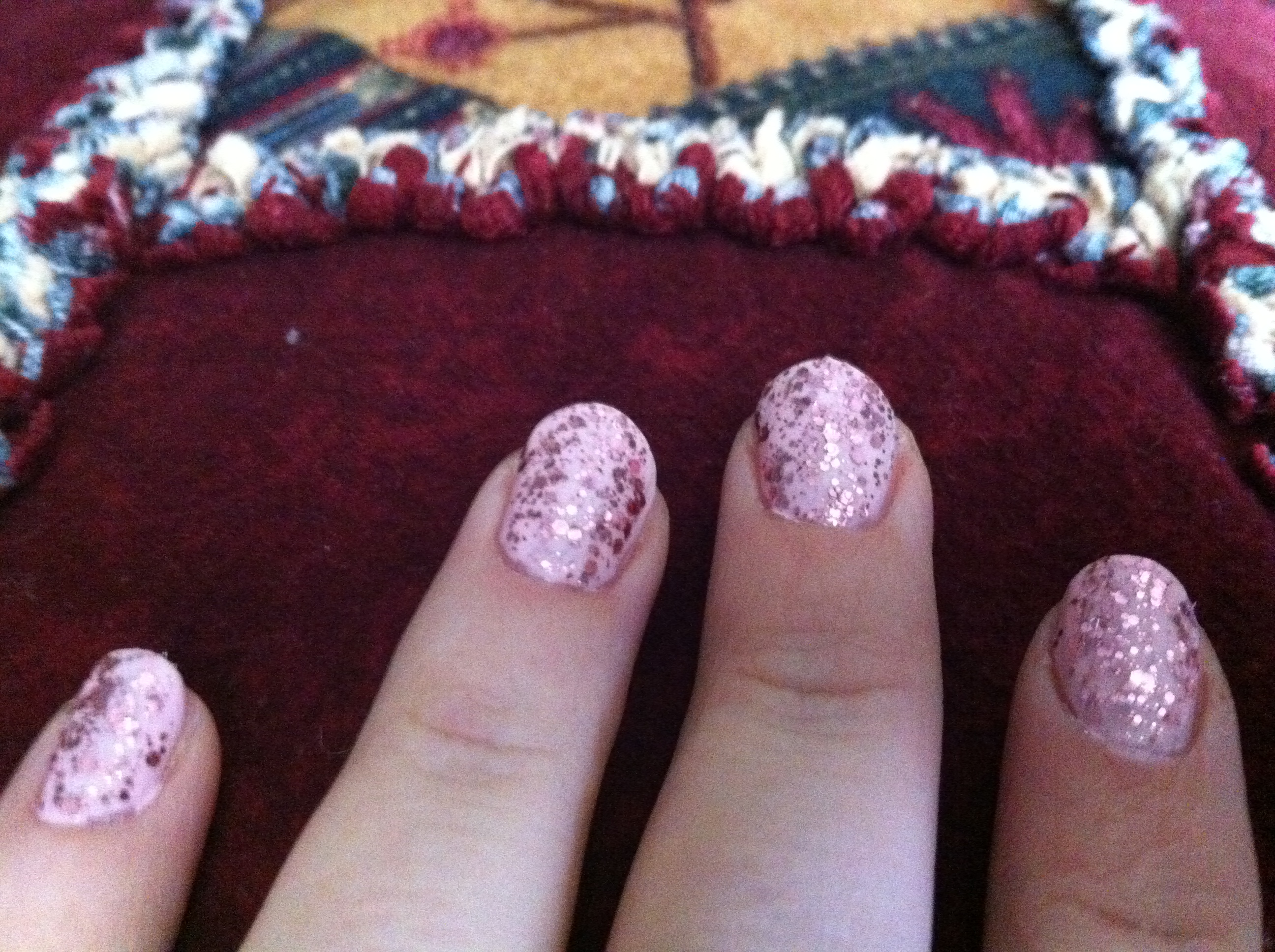 4. To make my manicure a little bit special, I like to put Essie Luxe Effects over the layer of color on my ring fingernail. It just gives it a little bit of glam. It comes in a lot of different colors. You can also go full-on glam and do it to all your nails.