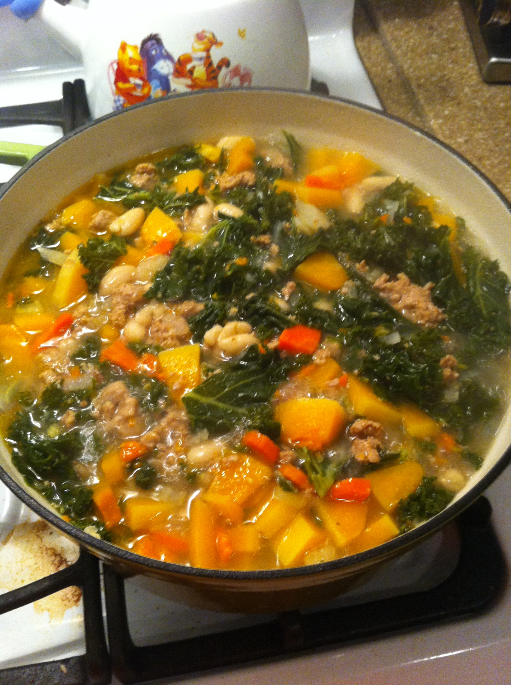 Turkey Sausage, Kale, and Butternut Squash Soup