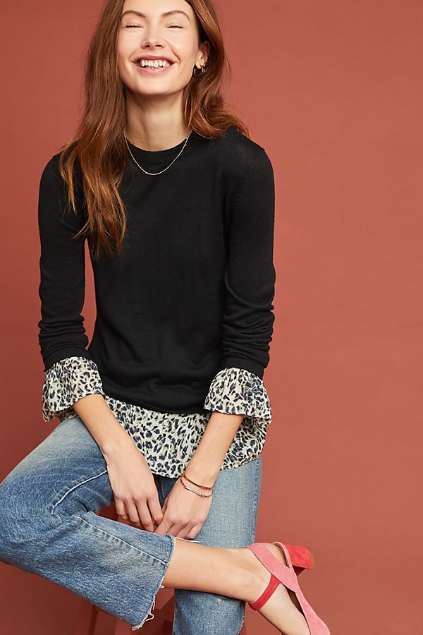If you’re not from New Jersey and you can’t quite handle the all over print, this is your answer. It’s leopard lite to add a little interest to your basic black sweater.